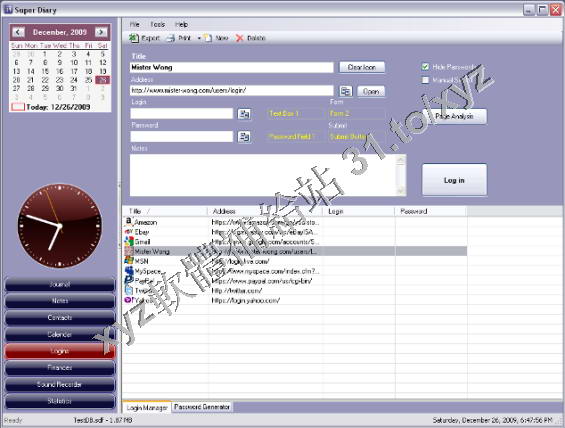 • Johannes Wallroth Super Diary v2.66 英文正式版(個人資訊、日程、日記管理軟體)