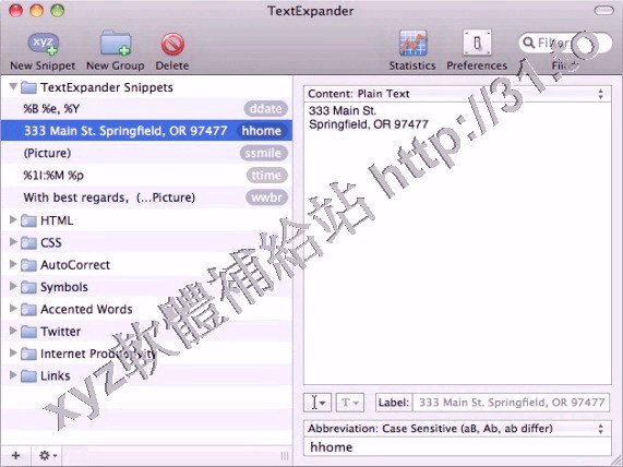 SmileOnMyMac.TextExpander是MAC OS X平台上的一款自動填報,自動簽名工具軟體,支